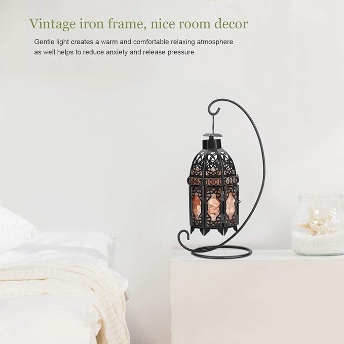- With a Metal Basket: : Each crystal salt rock has its own shape, size and color, and unique and each salt lamp is designed with iron frame, sturdy, and full of vintage .