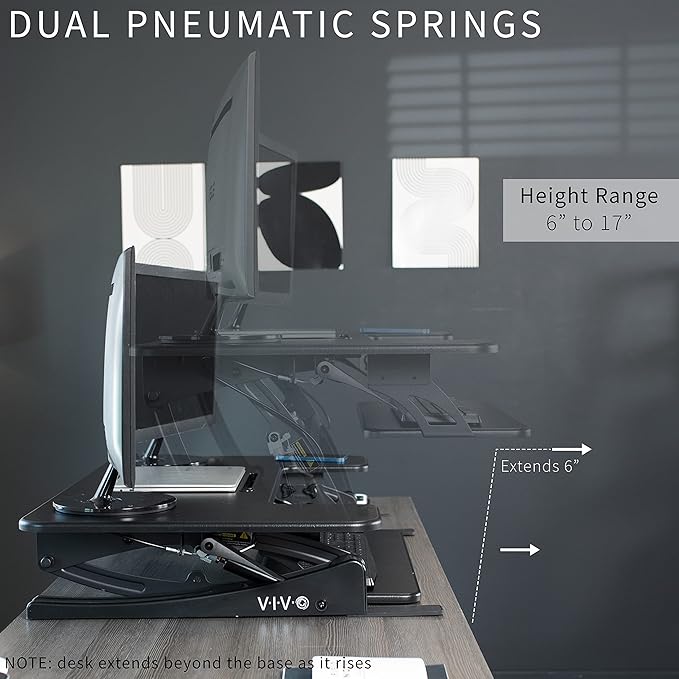 - Create Instant Active Standing: VIVO’s desk riser provides on-demand standing throughout the day for the freedom to get out of your chair and relieve muscle tension, reduce stress, and increase productivity --Patented--