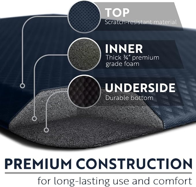 KANGAROO Thick Ergonomic Anti Fatigue Mats for Kitchen Floor, 48x20, Cushioned Standing Office Desk Mat, Waterproof Scratch Resistant Topside, Supportive All Day Comfort Padded Foam Rugs, Navy