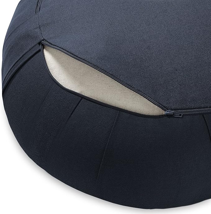 Zafu Meditation Cushion, 15" Round Buckwheat Yoga Pillow with Organic Cotton Cover