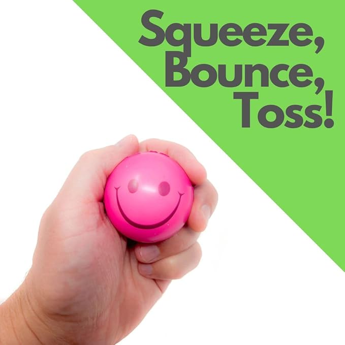- SMILEY FACE STRESS RELIEF: Discover the ultimate anxiety relief with our charming smiley face stress balls – suitable for children, men, and women. You get 2 dozen neon smile squish balls in one cost-effective purchase, perfect for party favors and beyond.