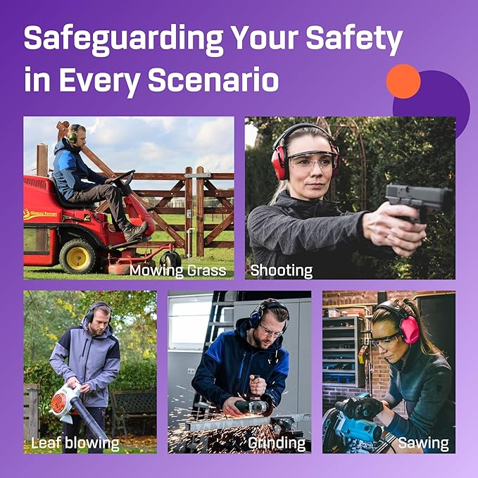 - ✅【DURABLE, COMFORT & 5 YEAR WARRANTY】: Trust in the durability of our noise-canceling ear muffs, crafted with high-quality ABS and a robust metal frame. Backed by a 5-year warranty, they confidently withstand rough handling and prolonged use.