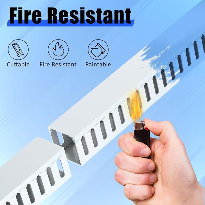 Wire Duct Kit, Open Slot Cable Management Raceway, 123in Track Desk Channel, Cord Cover Wiring, Cable Raceway Kit to Hide Wall Mount TV Cables - 8x15.4in X 1.97in X 1.97in