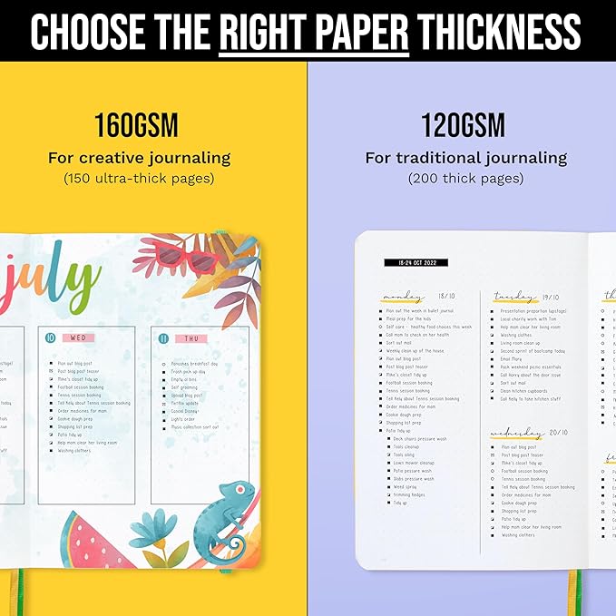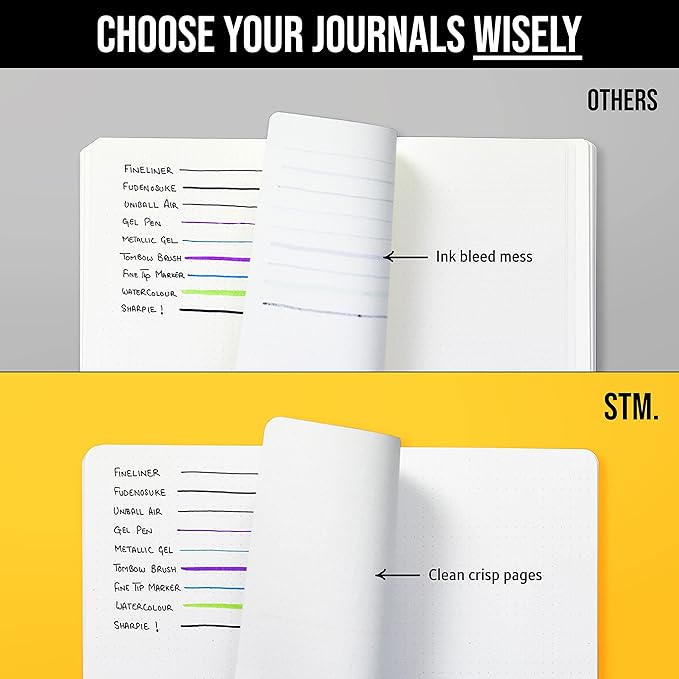 - ULTRA THICK ZERO BLEED PAPER: Enjoy zero bleed-through, zero ghosting, and zero feathering on 160gsm (ultra-thick) paper for heavy mediums such as markers and paint whilst 120gsm (thick) paper is perfect for pens, fountain pens, highlighters etc.