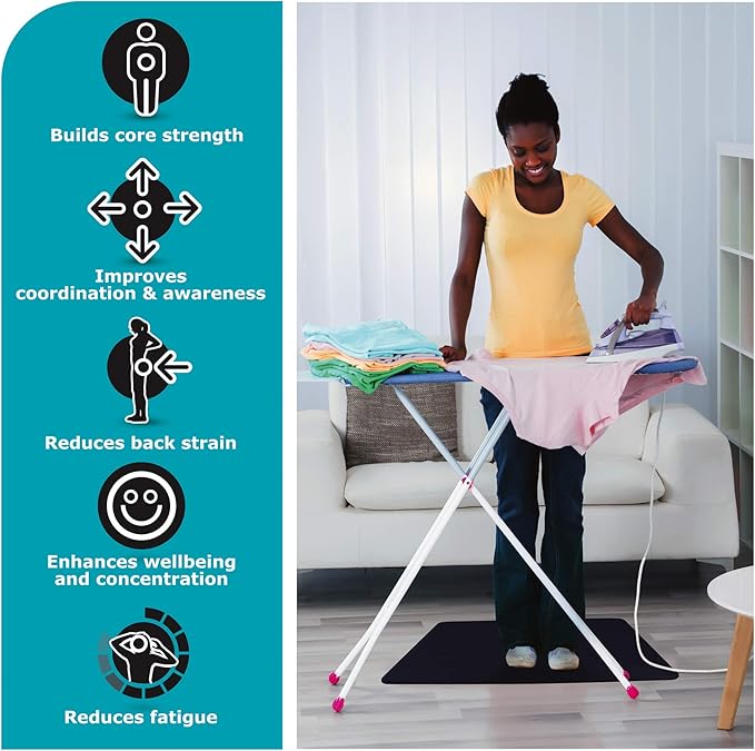 - THICK AND SUPPORTIVE CUSHIONED COMFORT MAT - The thick, padded, supportive standing pad surface encourages good posture and helps reduce pressure on joints and muscles in your knees, feet, legs and back, while providing maximum comfort and stability during prolonged standing in the home or office.