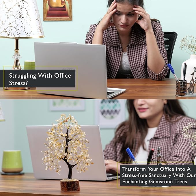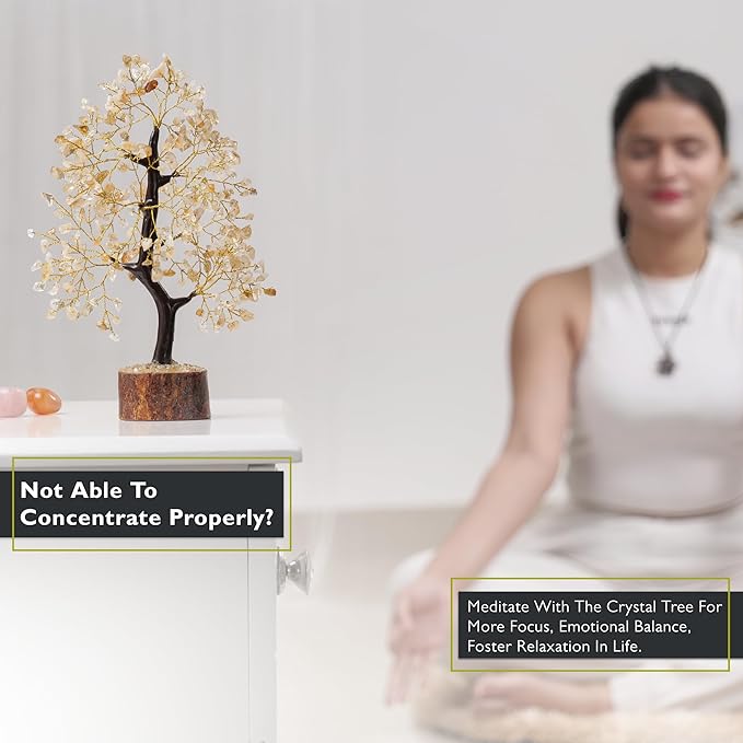 - Bonsai tree decor: Citrine feng shui tree figurine made from the beautiful small crystal beads of citrine stones and crystals and golden wire with the approximate size 10-12 Inch which look beautiful when use in home, office, living room etc. The crystal décor tree is crafted by the skilled artisans in INDIA who gave a beautiful look to the gemstone tree.
