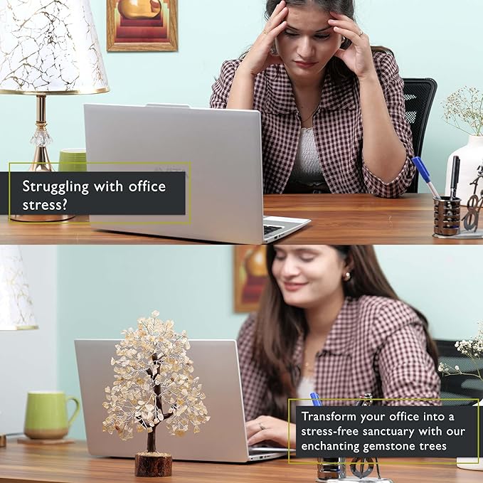 - Chakra tree of life specification: Citrine feng shui tree figurine made from the beautiful small crystal beads of citrine stones and crystals and silver wire with the approximate size 10-12 Inch which look beautiful when use in home, office, living room etc. The crystal décor tree is crafted by the skilled artisans in INDIA who gave a beautiful look to the gemstone tree.