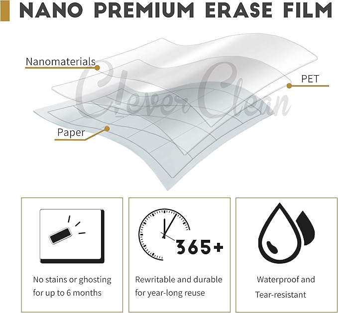 - Erases easily - Our calendars use premium nano erase film, making it incredibly easy to wipe off notes, even those that have been written for a long time. No residue, no fuss.