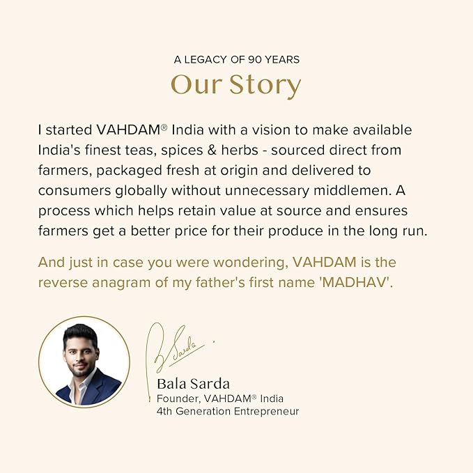 - A Brand With a Billion Dreams - Feel alive with VAHDAM India’s premium teas. A leading global brand, we ship to over 3 million customers in 130+ countries. Proudly carbon-neutral and plastic-neutral, we invest in environmental sustainability under our home-grown, sustainable label.