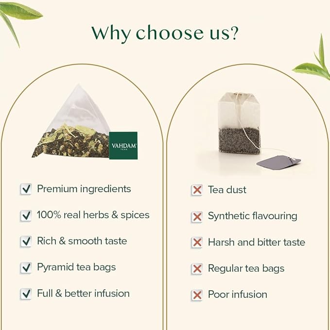 VAHDAM, Cardamom Masala Chai Tea Bags (100 Count) Non GMO, Gluten Free, No Artificial Flavor | Blended w/Exotic Spices | Chai Tea | Resealable Ziplock Pouch