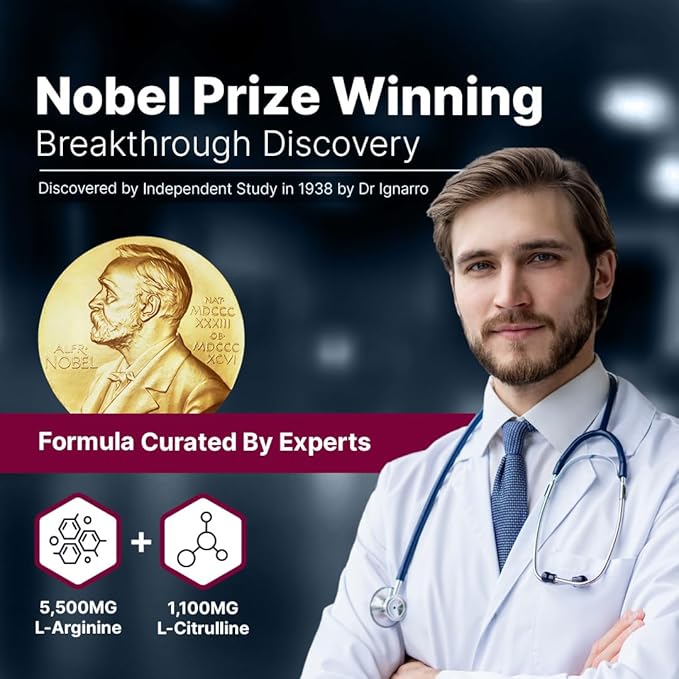 - BASED ON AN AWARD WINNING NITRIC OXIDE DISCOVERY: L-arginine Pro is formulated based on a Nobel Prize winning discovery breakthrough showing how nitric oxide supports cardiovascular health. L-Arginine Pro stands out with its high-potency blend of 5,500mg of L-Arginine and 1,100mg of L-Citrulline an effective combination that enhances nitric oxide production more than those that offer only L-Arginine.