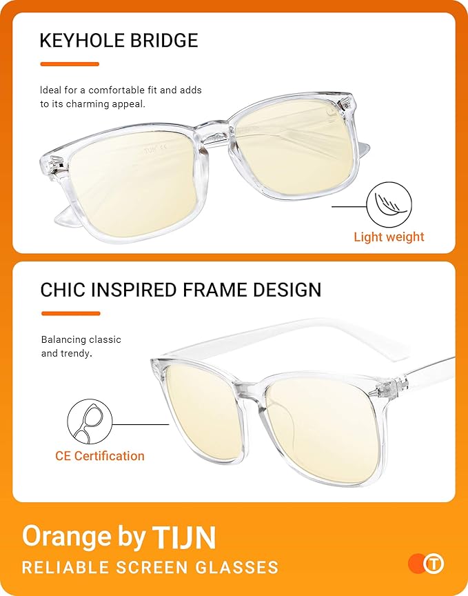 - ☀TIJN GAMING GLASSES: The yellow tinted lens effectively block harmful ultraviolet radiation and reduce the damage caused by harmful blue light, eliminate glare and improve contrast. Higher blocking rate than normal blue light glasses, best for extended computer use.