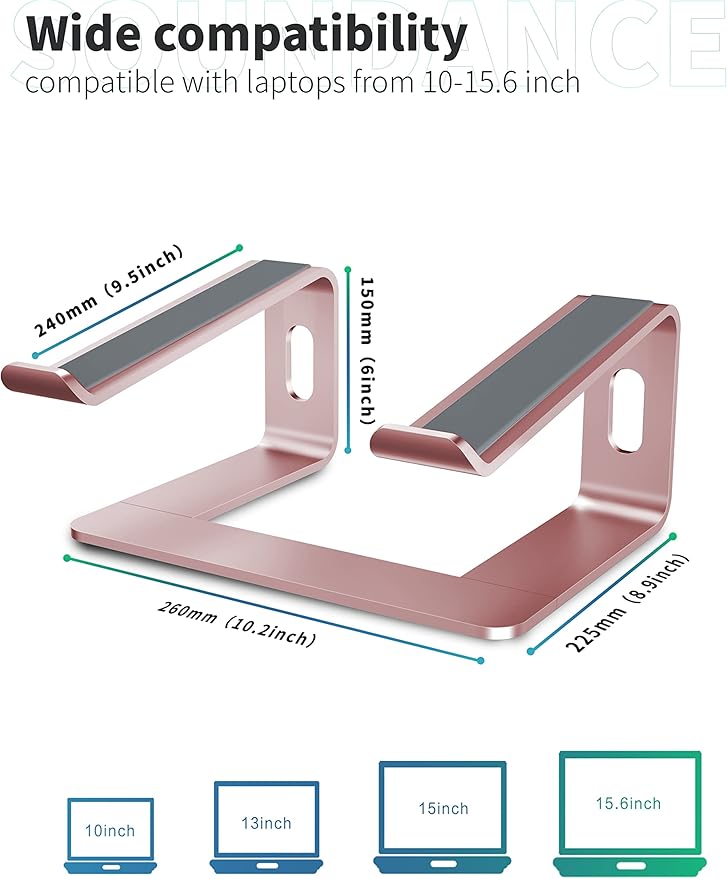 SOUNDANCE Laptop Stand, Aluminum Computer Riser, Ergonomic Laptops Elevator for Desk, Metal Holder Compatible with 10 to 15.6 Inches Notebook Computer, Gold Pink