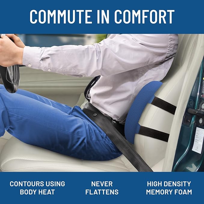 - PROMOTES BETTER POSTURE AND BACK SUPPORT: Mimics the spine's natural curve to support your upper, middle and lower back, for comfortable all-day back support for car seats. The lumbar car cushion for driving seat makes your commute more comfortable