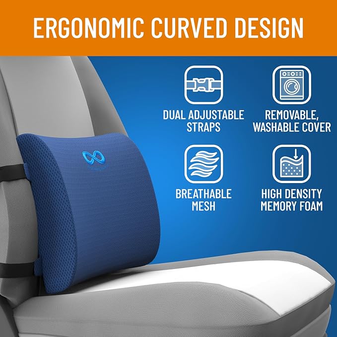 - LUMBAR SUPPORT FOR CAR SEAT: Contours to your body, targeting lower back discomfort; ideal for car seats. Our comfortable car cover provides great chair back support