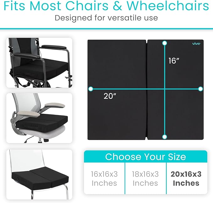 - ORTHOPEDIC SUPPORT ANYWHERE YOU SIT: Designed to deliver orthopedic-grade relief, the Vive foldable seat cushion transforms any chair—at home, in the office, or on the go—into a supportive seat. Engineered to reduce pressure on the tailbone and lower back, it promotes proper spinal alignment and alleviates sciatica, hip, and back pain.