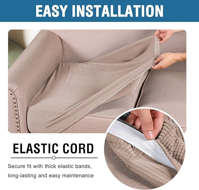 - NON SLIP: Effortless for installation (guide photos on selling page), sewn with thick elastic loops to cover the bottom edges. It is easy to install and take off, making your home more harmony, high recommended for both leather and cloth furniture