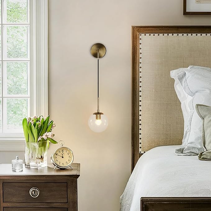 - 【Adjustable Cord & DIY Install Hanging Height】The gold globe wall sconce come with a 19.7” hanging cord, allowing you adjust the hanging height as per your request, max hanging height is about 19.7”. Just loosen the screws that close to the glass globe and you could adjust the cord.