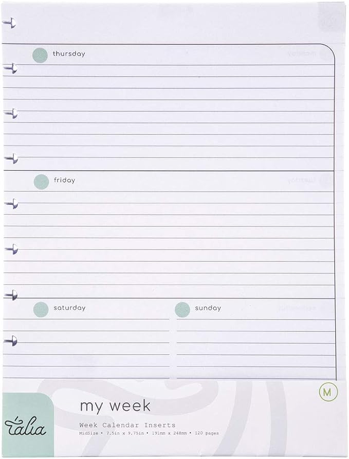 Talia Discbound Notebook Refills (Horizontal Undated Layout, Midsize (7.5in x 9.75in))