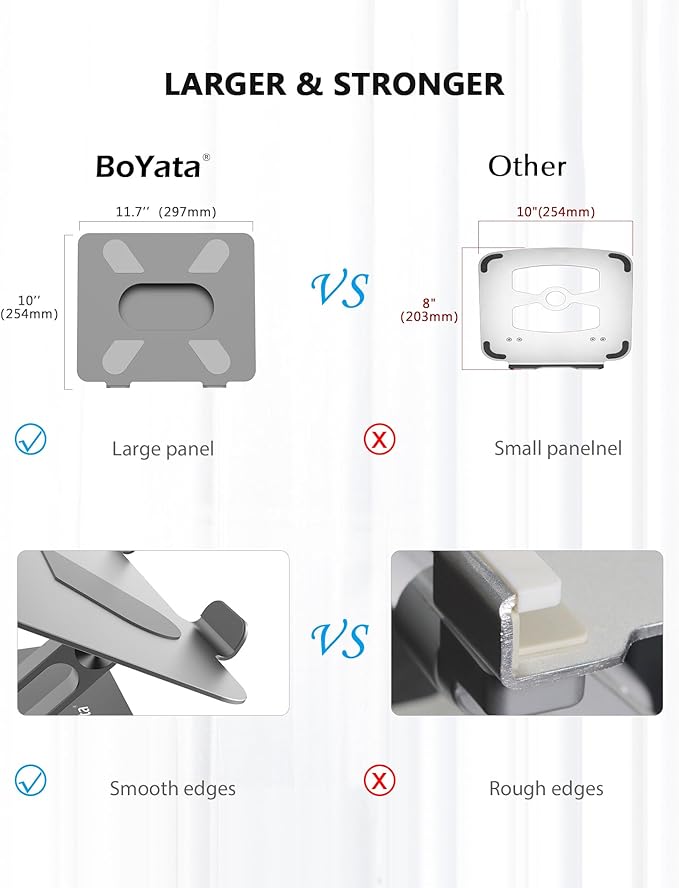BoYata Laptop Stand, Laptop Holder, Multi-Angle Stand with Heat-Vent, Adjustable Notebook Stand for Laptop up to 17 inches, Compatible for MacBook Pro/Air, Surface Laptop, and so on (Space Gray)