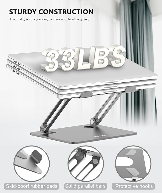 - COMPATIBILITY: The laptop stand fits a variety of laptops, compatible for MacBook/ Macbook Pro/ HP/ Lenovo laptops up to 17 inches, etc.