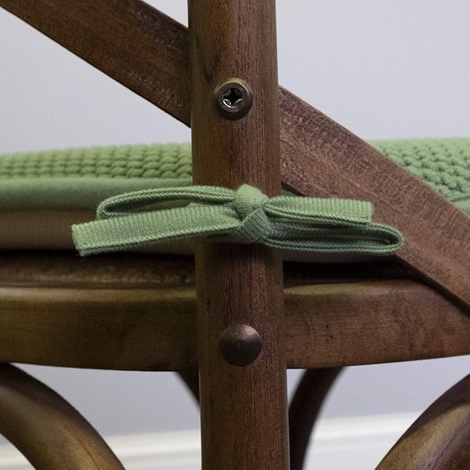 - TIES COMBINED WITH SKID-PROOF BACKING - We understand the frustration caused by chair pads when they don't stay in place. One of the most important qualities of a chair cushion is the ability to stay in place with frequent usage. Ties have been used on chair pads for decades. They are a simple, yet thorough means of keeping your cushion on your chair. Through research and development, we have designed the best way to keep our chair pads stuck to your chairs like glue (without the glue) - where they belong. Buy a 2 pack, 4 pack, 6 pack, or 12 pack today to put a comfy and cozy chair pad on all of your chairs once and for all.