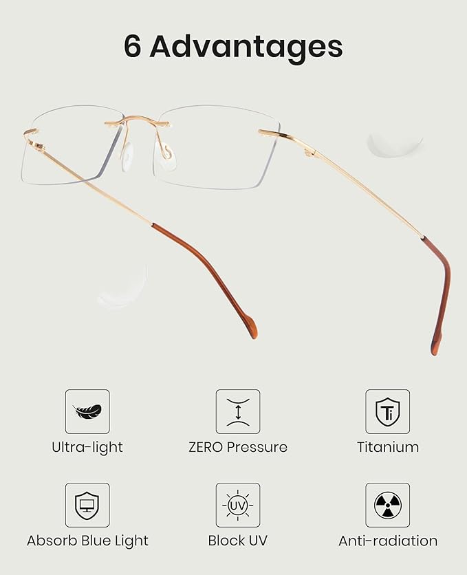 Cyxus Titanium Blue Light Glasses for Men Blue Light Blocking Eyewear Ultra Light Anti Eye Strain Rimless Eyeglasses Reduce Headache