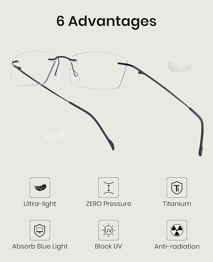 - Titanium Blue Light Glasses For Men: Made from lightweight, durable titanium, our frames are hypoallergenic and provide exceptional strength without the weight.