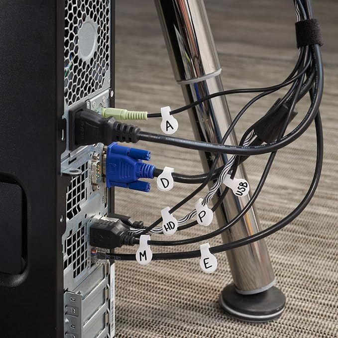 - SO MANY USES - Identify cords, cables, wires and more. These cable identifiers can be used for cable storage, network cable management, electrical organization, home theater cable management; and as a power cord organizer, computer cable organizer, computer cable labels, marking tags, ethernet cable labels, wire tags, speaker wire labels, audio cable labels.