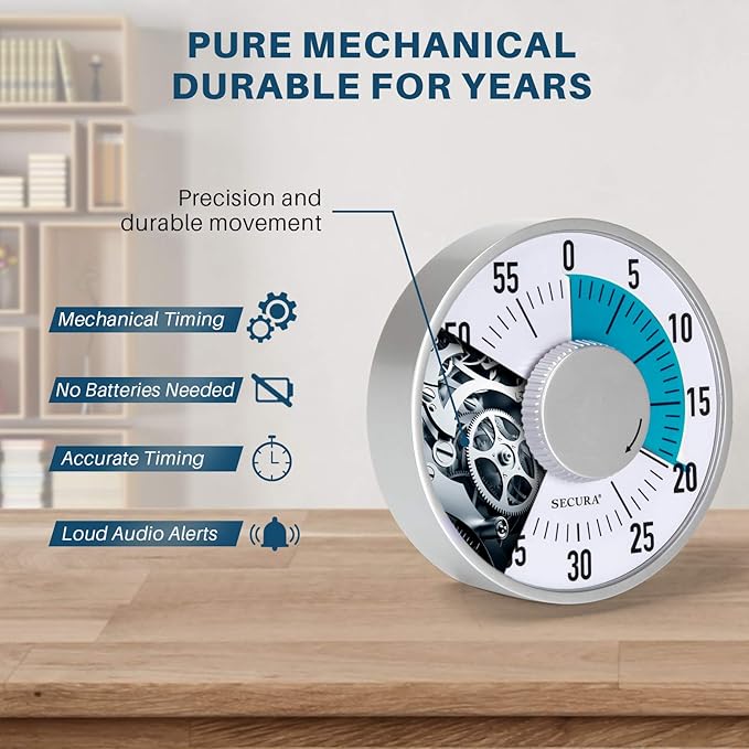 - NO BATTERIES REQUIRED - Completely mechanical countdown timer for school classroom, office working, kitchen cooking, gym body building, and more! High accurate mechanical timing. No batteries needed