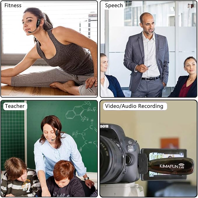 - 【Designed For Fitness】The microphone can be used in two ways: used as a general headset mic, or remove the head bracket, it will become a handheld microphone. The wireless transmitter is fixed on the head bracket. It can help you get rid of shackles of cable for maximum comfort and freedom of movement. The microphone is suitable for fitness coach, spinning coach, aerobics coach, Yoga coach, Pilates coach, water sports, gym teacher, teacher, speech, YouTube video/audio recording and so on.