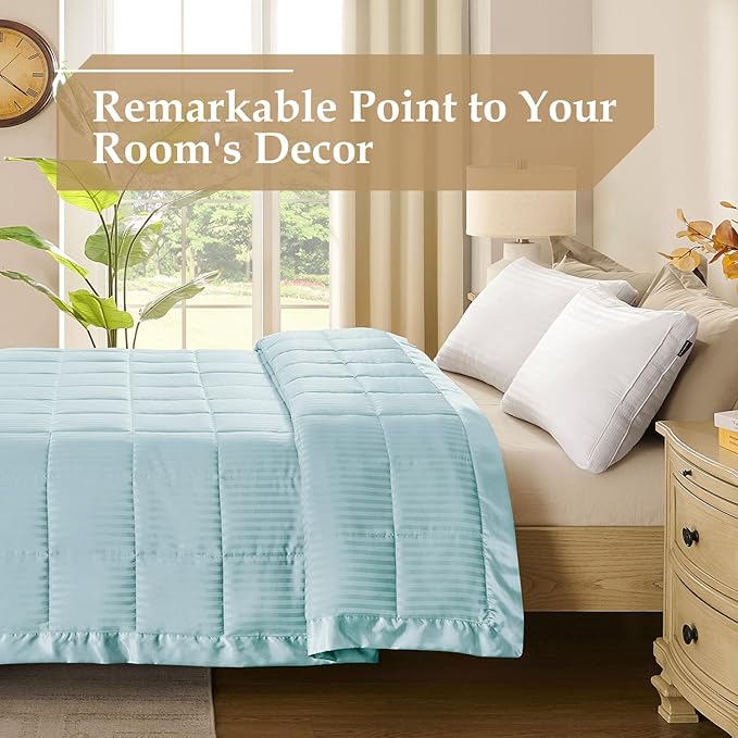 - Supreme Comfort: Our blanket featuring premium 135 GSM down alternative fill that stays fluffy and evenly distributed without clumping or odors. The elegant stripe jacquard design is finished with 3-inch satin binding for a luxurious drape, perfect for stylish bedding