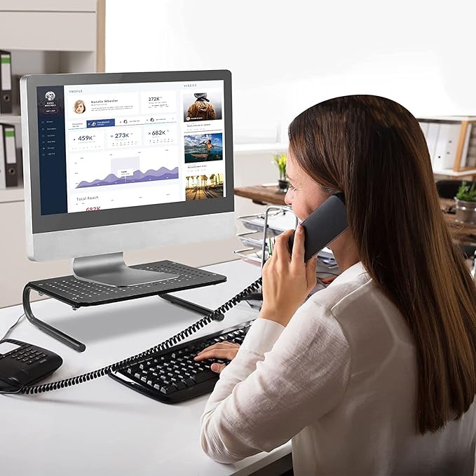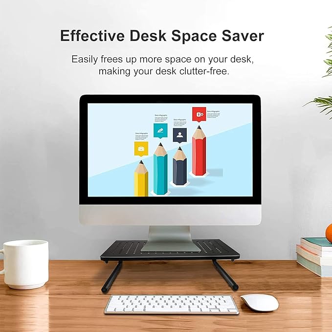 - Ergonomic: raise computer monitor, laptop or any display by 100mm inches off the desk to create a comfortable viewing position and a better health sitting position which helps reduce stress on the neck and back