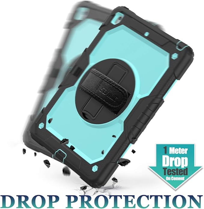 - Soft Strap & Portable Shoulder Strap & Rotating Stand: Provide the protection and convenience when you play or work with iPad. Hang it anywhere for your entertainment, makes you using case for iPad 9th/8th/7th Generation easily. 360 Degrees rotating Kickstand provides convenient viewing, with soft strap, easy to use your case for iPad in your outdoor travelling, working, gaming with kids