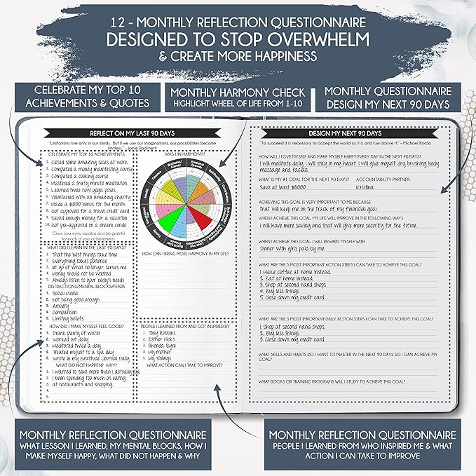 - THIS IS A DELUXE UNDATED HARMONY PLANNER - Showing you how to become the best possible version of yourself on a mental, physical & interpersonal level. It’s the only planner of its kind, and its design is based on leading scientific studies that are proven to increase productivity, harmony & happiness! It has a vision board to stay focused, morning & evening routines, mind maps, reflection pages, 90-day habit tracker, back pocket, harmony guide and so much more than any other planner listed!