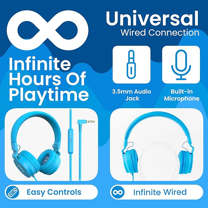 - IDEAL FOR SCHOOL AND HOME USE: Great as kids wired headphones for school, these headphones provide a safe listening volume and excellent sound quality, whether it's for listening to educational content, watching videos, or playing games. Durable and practical for everyday use!