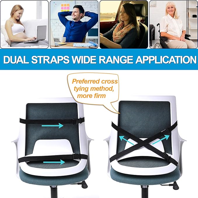 - πππππ ππππ πππ πππππ: Our Chair Pillow features a non-slip, rubber bottom to ensure it stays firmly positioned in a seat. Two Adjustable Straps keep the back support cushion in place and prevent the lumbar pillow from sliding down. So the combo is suitable for office chair, computer chair, gaming chair, car seat, any home chair or a seat on a bus, airplane or train. Our butt cushion is suitable for drivers, teachers, students, people with office workers, etc.