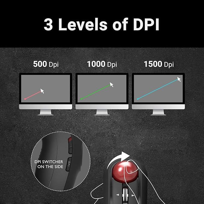 - ✅《DPI CURSOR》The DPI button can easily change between 500(LOW), 1000(MID) and 1500(HIGH) DPI, making the movements of your cursor faster or slower.