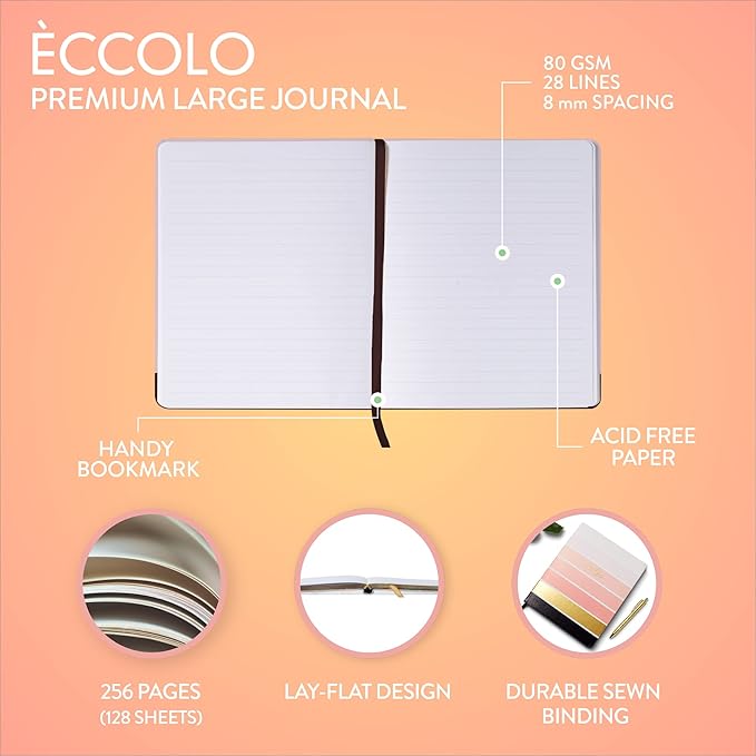 - The large notebook journal for women and men by Eccolo is the modern fun spin on the classic notebook. Chic and colorful, this professional notebook features all you need for it to be your daily companion. Office desk size, hard cover, style, and practicality