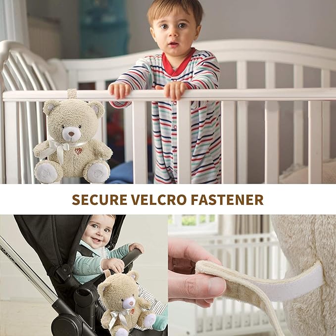- 3. Easy to use functions with clear instructions: Set manually or use cry sensor to activate sound and light effects automatically, adjustable volume to suit your baby, goes to sleep once your baby is relaxed and settled, fully portable and can be strapped to your baby's cot crib or Moses basket with a simple velcro strap
