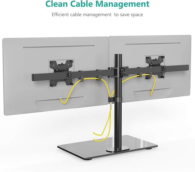 - Package Includes: 1 x WALI Free Standing Dual Monitor Mount with Glass Base (Black), Mounting Hardware Kit, User Manual, experienced and friendly US based customer support available to assist 7 days a week