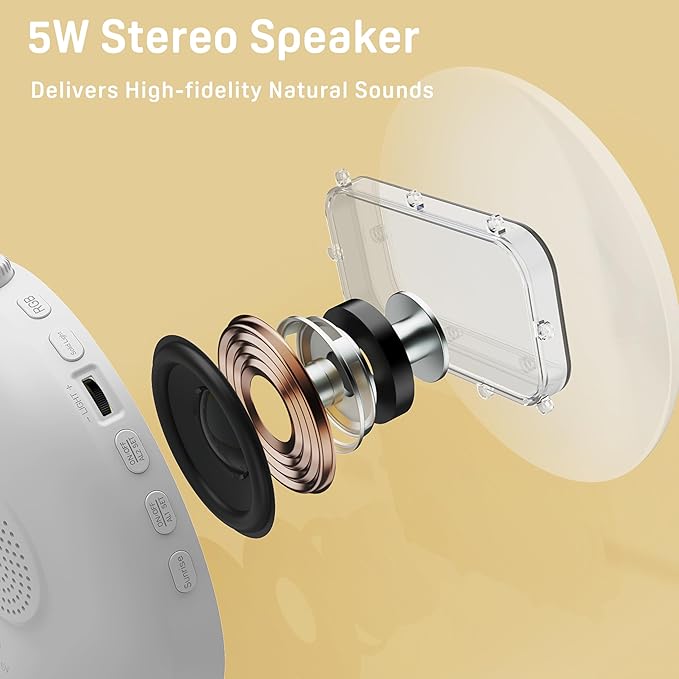 - 【Colorful Lights & 20 Brightness Adjustable】 There're many color lights you can choose, include blue, indigo, purple, red, orange, yellow, green. 3 level LED time display brightness(can be completely off) & 20 levels of adjustable lighting brightness.
