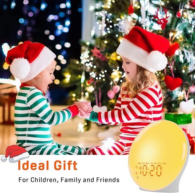 Wake Up Light Sunrise Alarm Clock for Kids, Heavy Sleepers, Bedroom, with Sunrise Simulation, Sleep Aid, Dual Alarms, FM Radio, Snooze, Nightlight, Daylight, 7 Colors, 7 Natural Sounds, Ideal for Gift