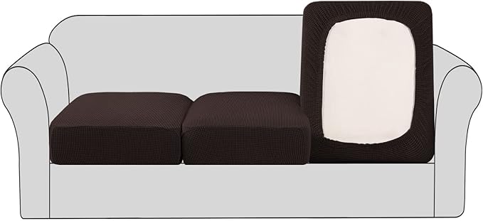 H.VERSAILTEX Super Stretch Couch Cushion Covers Sofa Cushion Slipcovers Jacquard Fabric Individual Seat Couch Slipcover Sets for Pets with Elastic Bottom(3 Packs Cushion Sofa Covers, Chocolate)