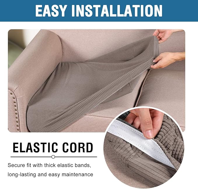 - NON SLIP: Effortless for installation (guide photos on selling page), sewn with thick elastic loops to cover the bottom edges. It is easy to install and take off, making your home more harmony, high recommended for both leather and cloth furniture