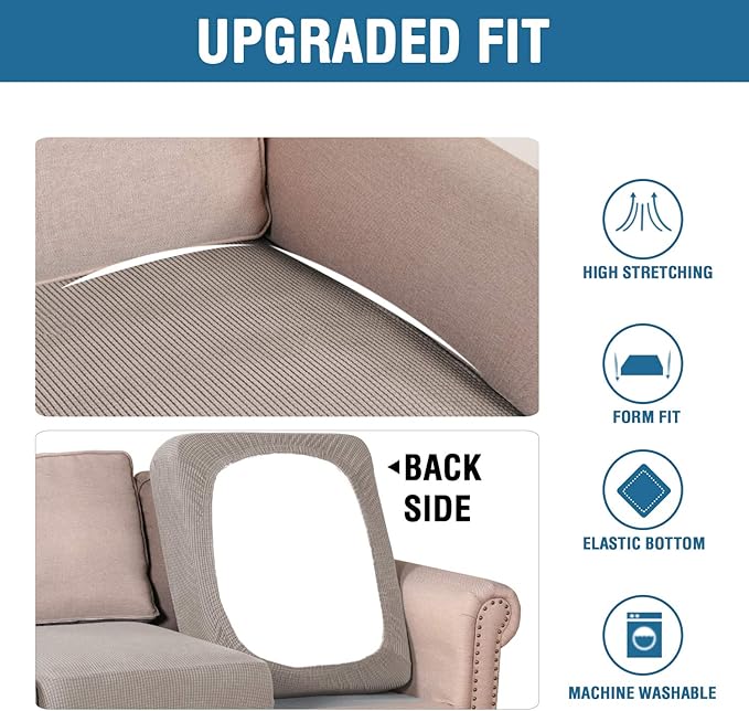H.VERSAILTEX High Stretch Couch Cushion Covers,Chair Sofa Seat Slipcovers Couch Cushion Cover Stretch Furniture Protector for Kids, Pets(2 Packs Cushion Loveseat Covers, Taupe)
