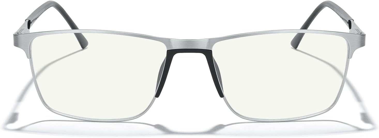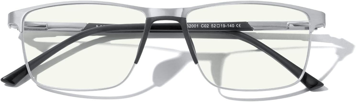 - 【METAL SPRING HINGE FRAME】- Ultra-lightweight metal frame and spring hinge for durability and comfortable long-term wear. Casual frame design keeps you looking professional and stylish while working or playing video games.