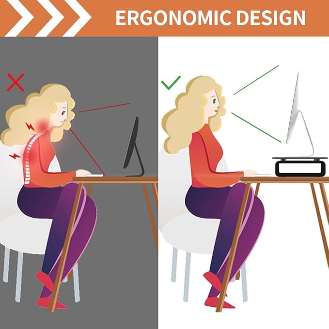 - Appropriate size and rising height ☞ It is 15L x 9.5W x 3.4H (inches). You can easily put your monitor on the glass top and put the mouse under it. So it is space-saving. Moreover, specialists’ surveys show the best rising height is 3-4 inch and ours is 3.4 inch