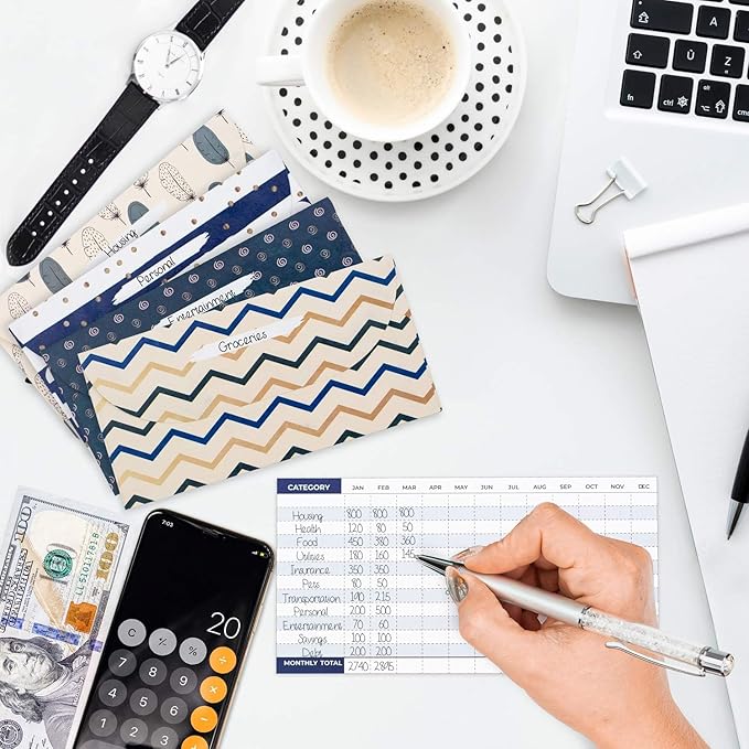 - 12 ASSORTED COLORS & COMPACT SIZE: The money envelopes for cash are 6.7 inches x 3.3 inches to easily fit inside your bag or wallet. Each envelope has a different color or pattern, so you can track up to 12 spending categories simultaneously.