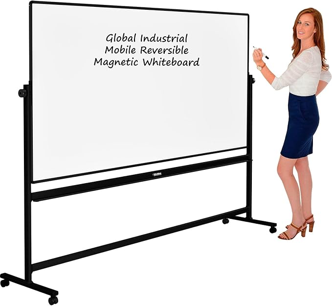 Global Industrial Rolling Magnetic Dry Erase Whiteboard, Double Sided Reversible, 96 x 48, Black Frame